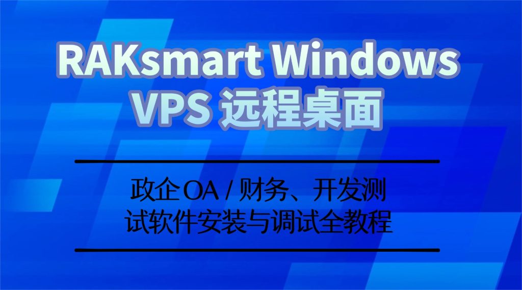 RAKsmart Windows VPS 针对政企 OA、财务软件、开发测试工具做了专属网络与系统优化,配合远程桌面(RDP)可稳定部署高兼容性、高安全性的业务环境。以下从远程桌面优化、政企软件安装、开发工具部署、专属调试方案、安全加固五大模块,提供完整实操教程。